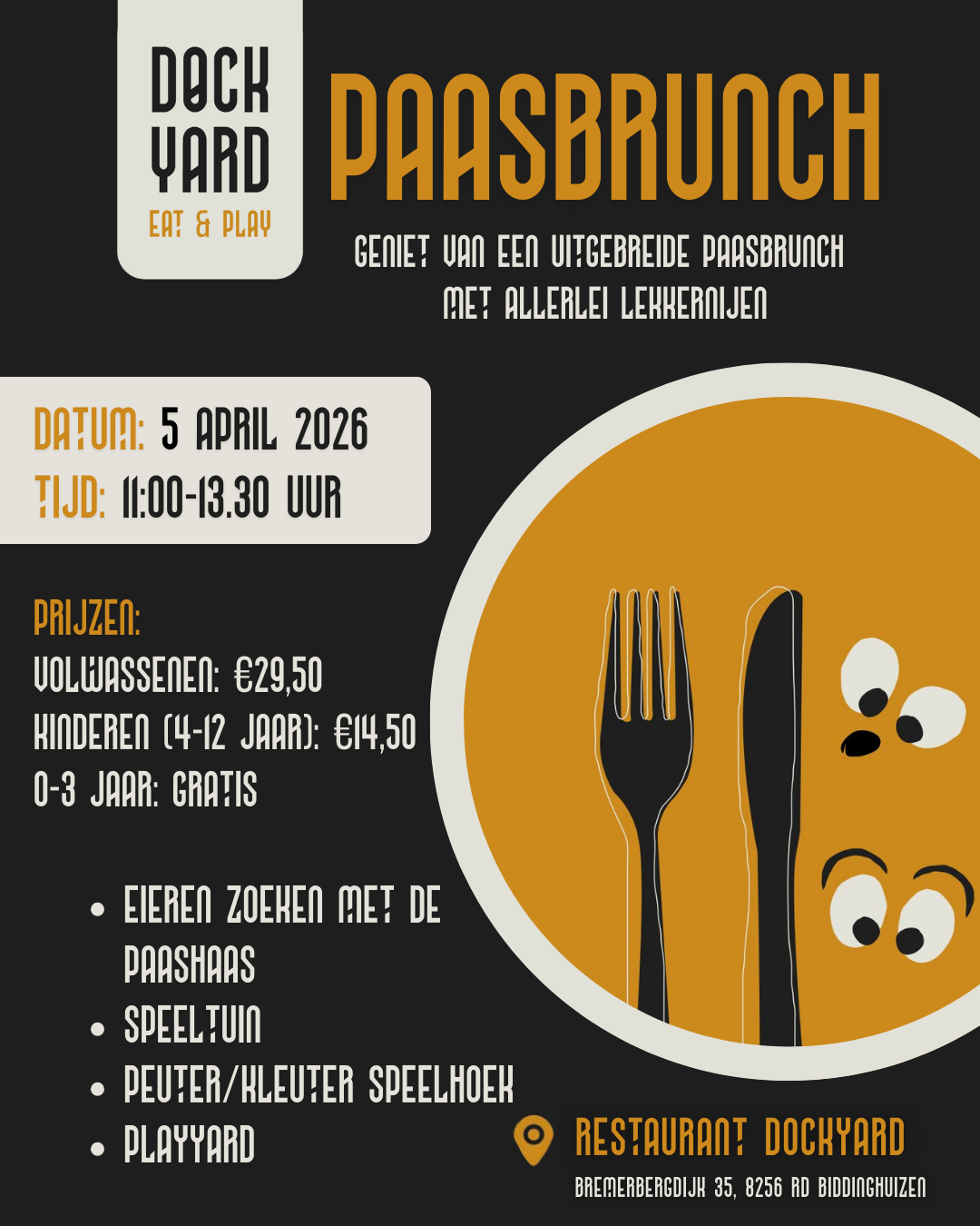 1e Paasdag vanaf 11.00 uur tot 13.30 uur onze welbekende Paasbrunch, graag reserveren